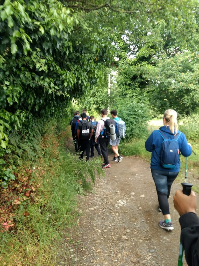 Igual que ayer el grupo va tomando su cuerpo. Hay algunos que empiezan rápidamente a coger tiempo. Echan adelante y otros se han prolongado. Los profesores nos mantenemos. El P.Paco en cabeza, Alexandría detrás y yo, D. Alejandro, un servidor, al medio. Vamos encontrando hueco para hablar con cada uno de ellos. Solamente con la compañía ya muchos empiezan a hablar y comentar.