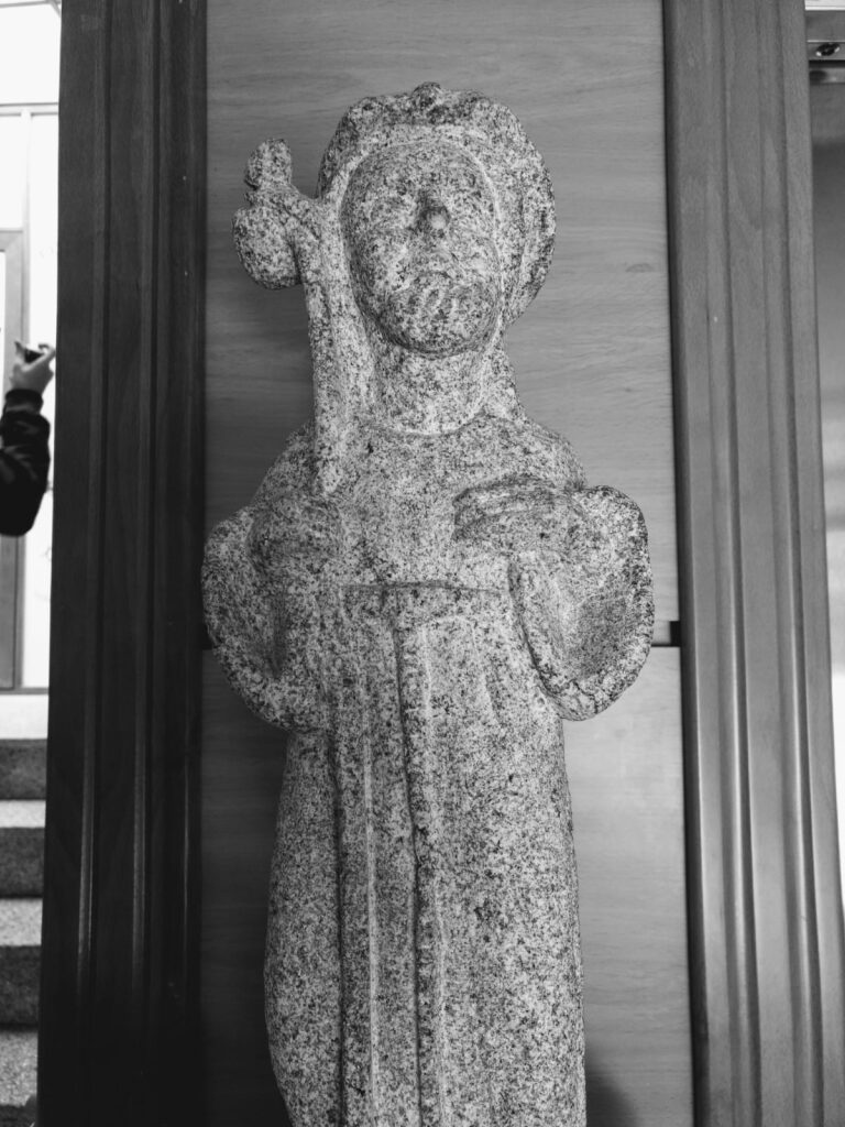Han sido 20 km a lo largo de los cuales hemos tenido que transcurrir por carretera pero la mayor parte, igual que ayer, a través de roble y de castaños. Una neblina muy densa a primera hora de la mañana hizo que tuviéramos que abrigarnos. Entramos en la capilla de Santiago en Arzúa donde ayer habíamos celebrado la Eucaristía, y después de sellar y hacer el ofrecimiento del día nos pusimos en camino.